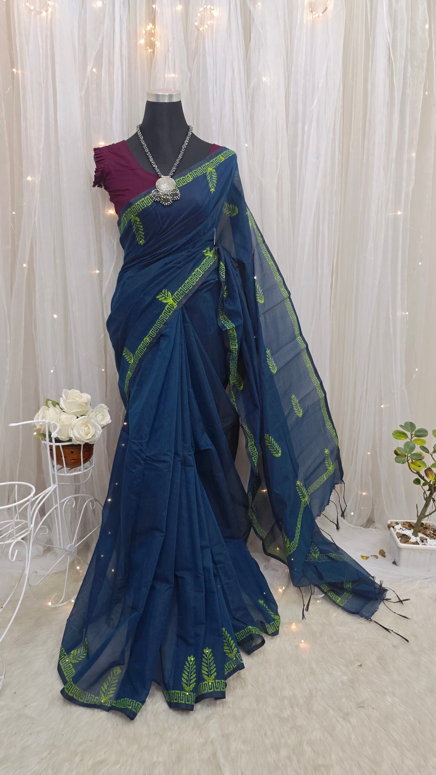 স্ট্যান্ডার্ড শাড়ী হয় ১২ হাত। আমরা ১৩.৫ থেকে ১৪.৫ হাত পরিমান কাপড় দিয়েছি যেনো কেউ চাইলে ব্লাউজ বানাতে পারে। এই এক্সট্রা কাপড়টুকু কাটা থাকবেনা, এটাচড থাকবে। যাদের শাড়ীতে এক্সট্রা কুঁচি ভালো লাগে তাদের জন্য এটা বেশ ভালো হয়❤️