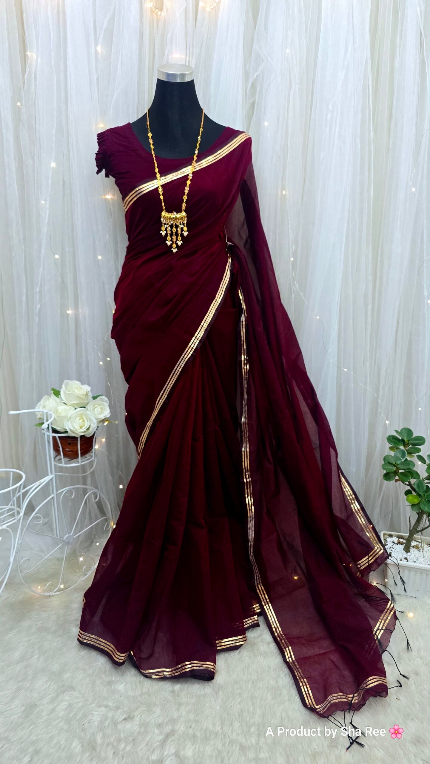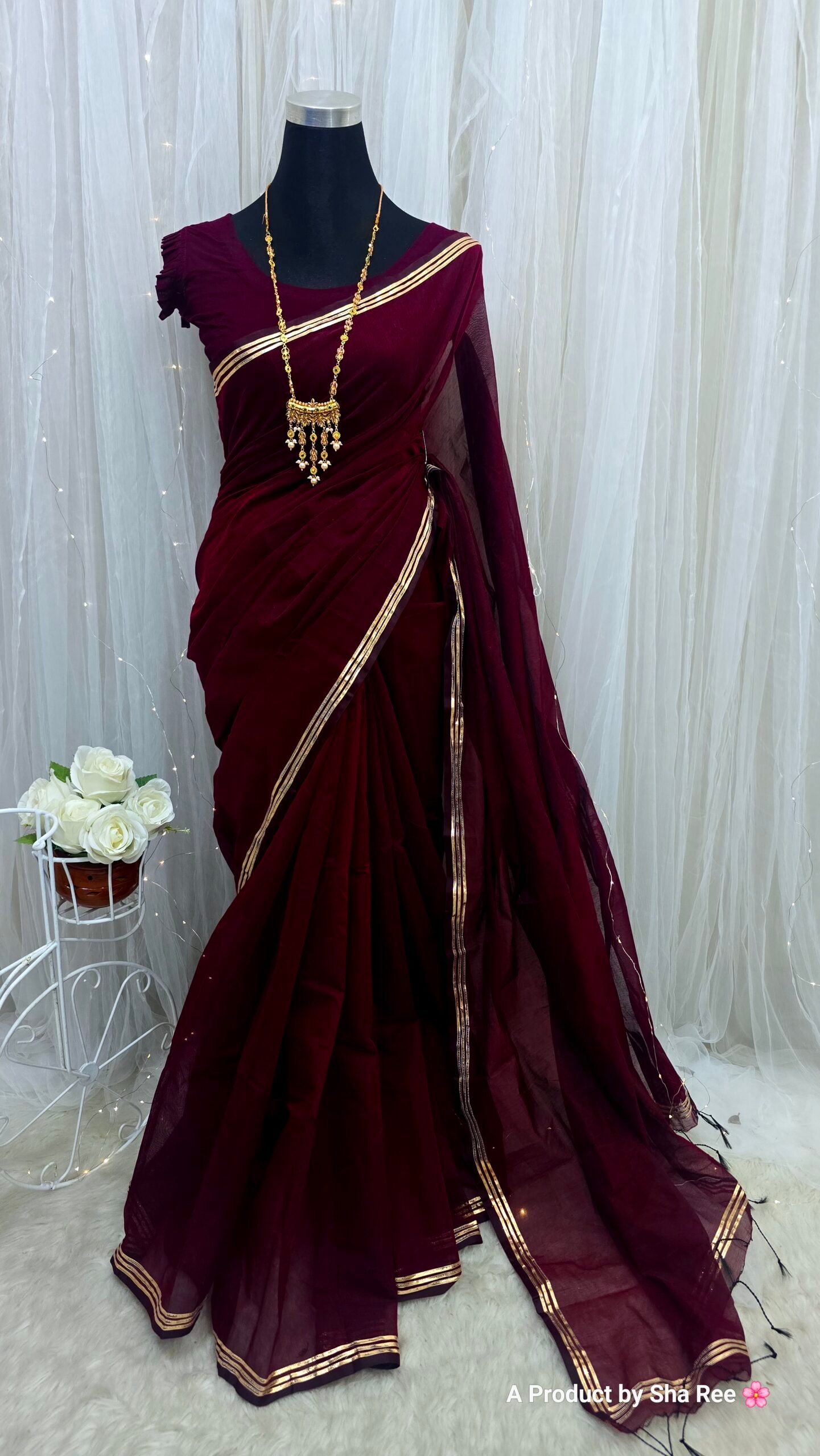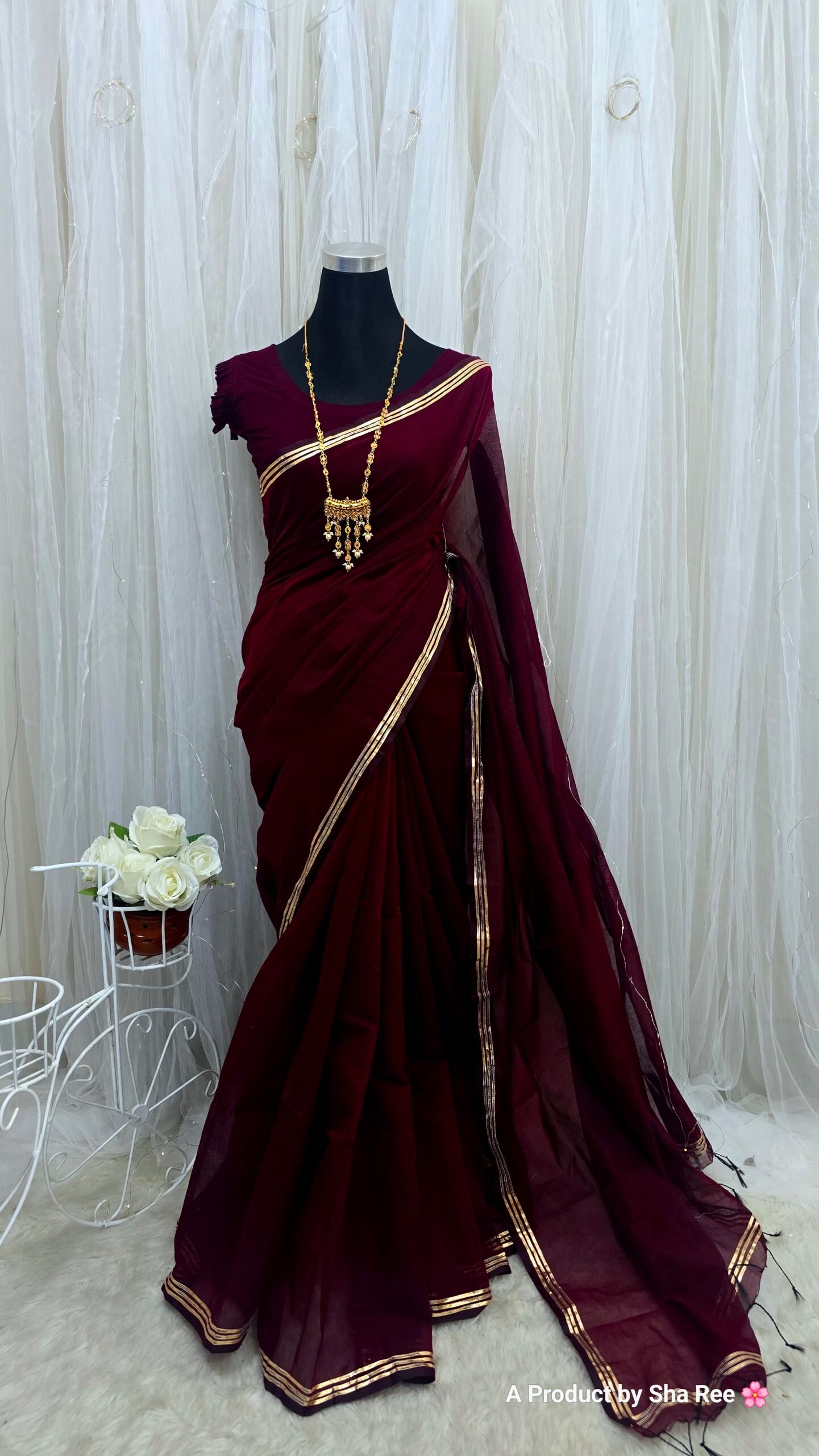 স্ট্যান্ডার্ড শাড়ী হয় ১২ হাত। আমরা ১৩.৫ থেকে ১৪.৫ হাত পরিমান কাপড় দিয়েছি যেনো কেউ চাইলে ব্লাউজ বানাতে পারে। এই এক্সট্রা কাপড়টুকু কাটা থাকবেনা, এটাচড থাকবে। যাদের শাড়ীতে এক্সট্রা কুঁচি ভালো লাগে তাদের জন্য এটা বেশ ভালো হয়❤️